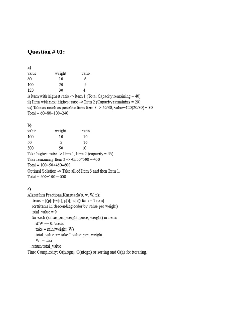 i) Item with highest ratio -> Item 1 (Total Capacity remaining = 40)