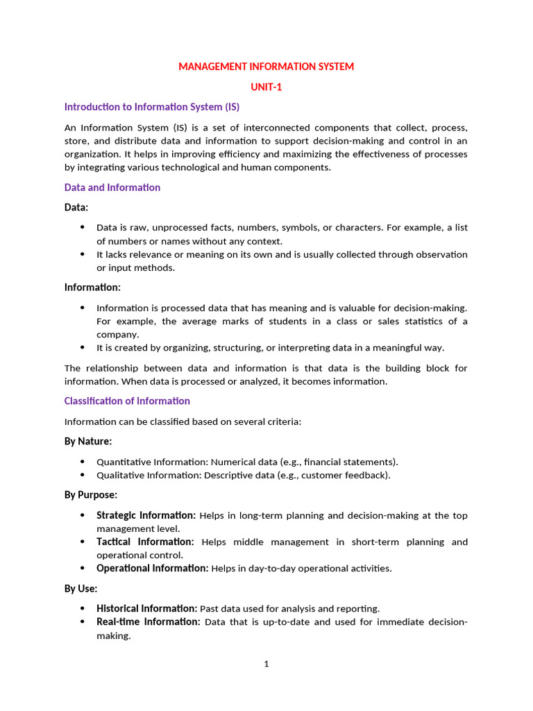 1. Data Resources: Raw material for the IS, consisting of databases, files, and other