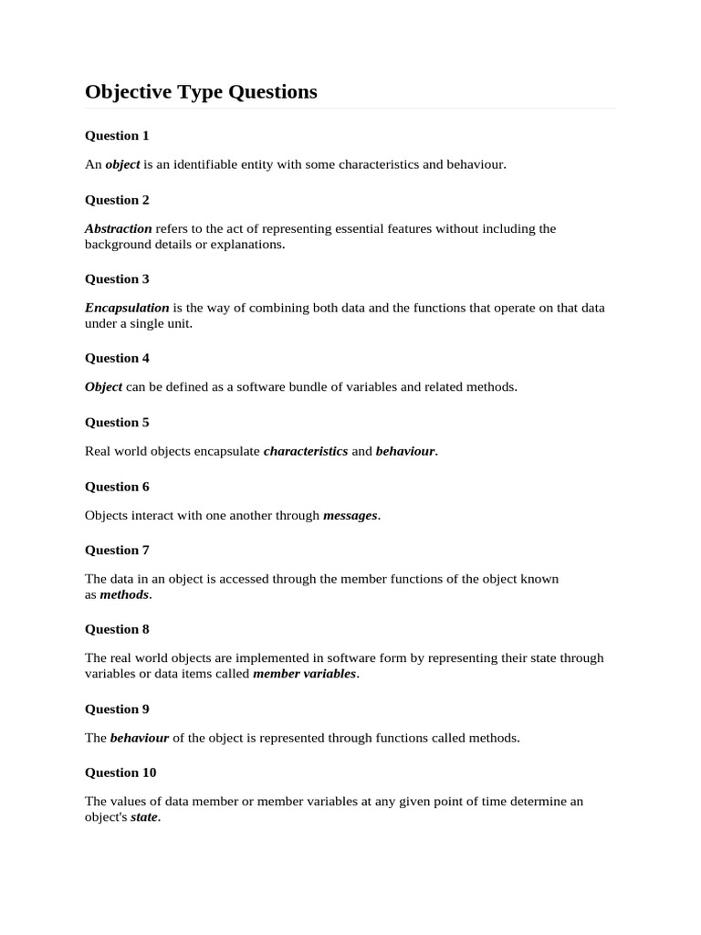 attributes and behaviour. Thus, classes are said to be abstractions of or a set of objects. We