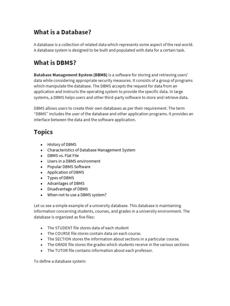 • The full form of DBMS is Database Management System. DBMS stands for Database
