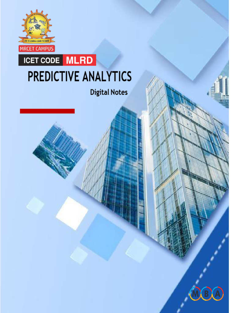 Course Aim: To know various predictive data analysis models and use analytical tools to solve