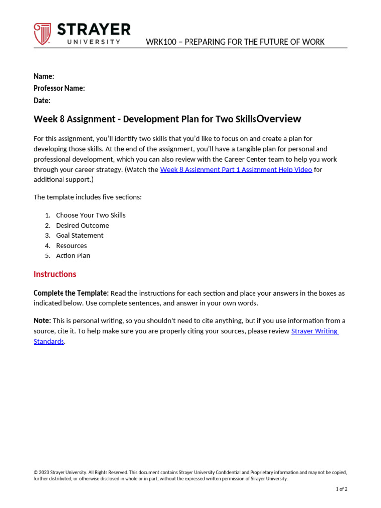 developing those skills. At the end of the assignment, you’ll have a tangible plan for personal and