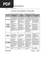 allotted time, with a well- short of the time limit, showing too short, with poor pacing and