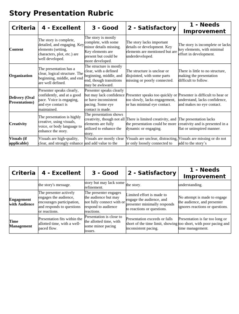 Criteria 4 - Excellent 3 - Good 2 - Satisfactory