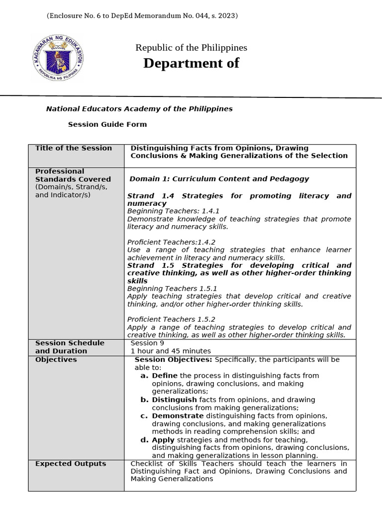 (Enclosure No. 6 to DepEd Memorandum No. 044, s. 2023)