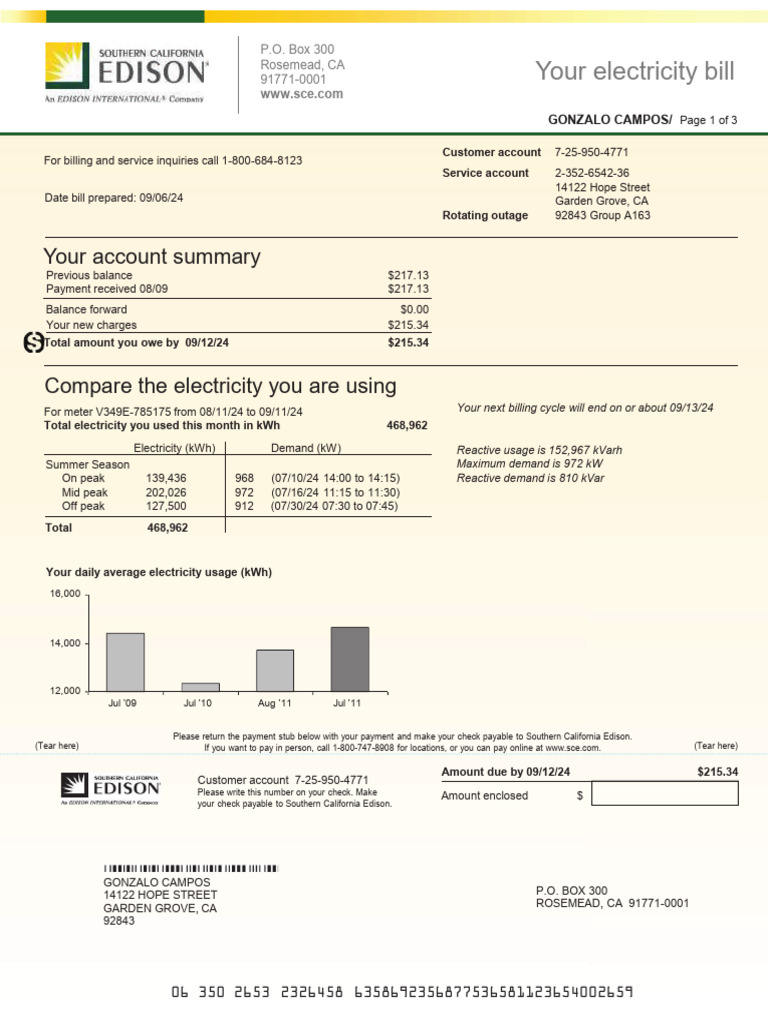 Date bill prepared: 09/06/24 Garden Grove, CA