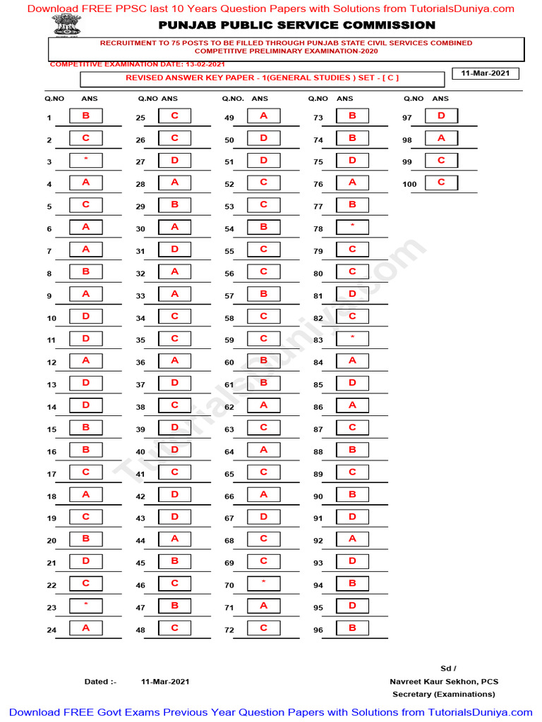 Download FREE PPSC last 10 Years Question Papers with Solutions from TutorialsDuniya.