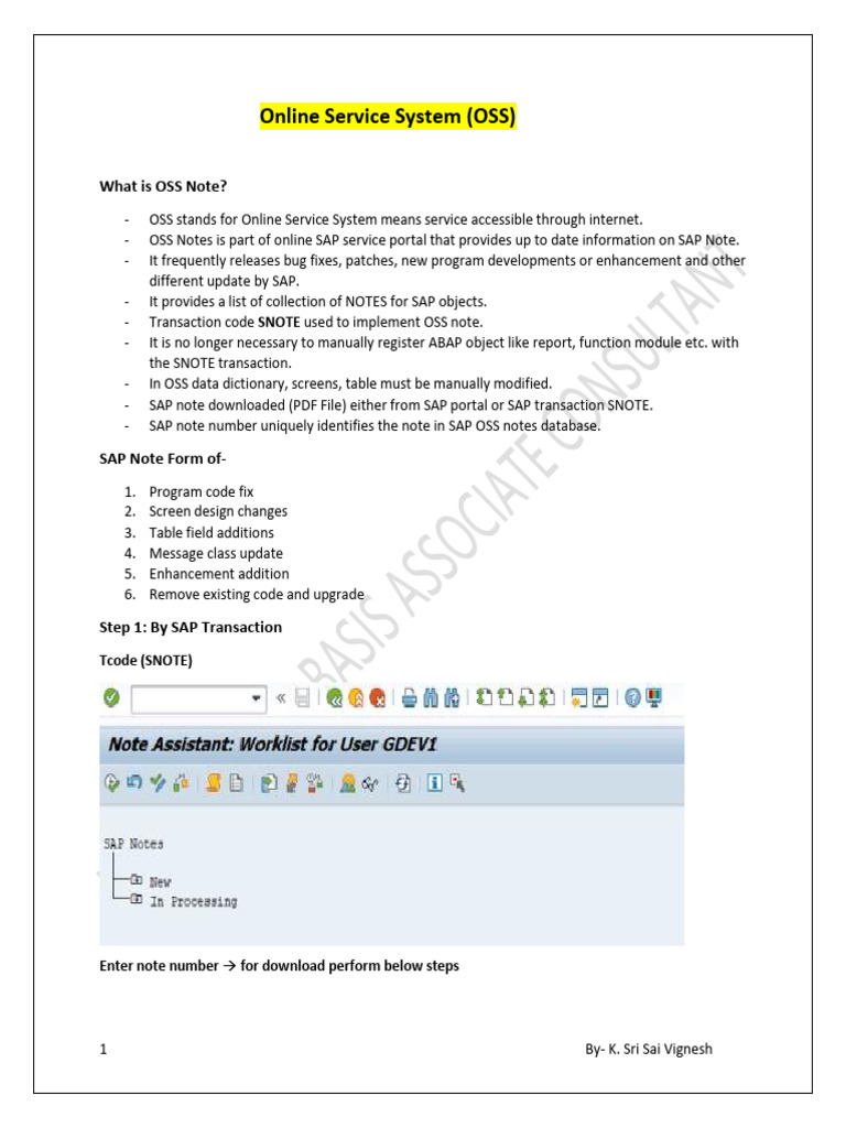 - OSS Notes is part of online SAP service portal that provides up to date information on SAP Note.