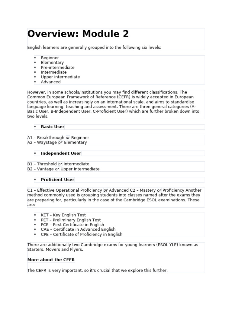 different age ranges of learners, etc. The CEFR makes it easier for all of us to talk about