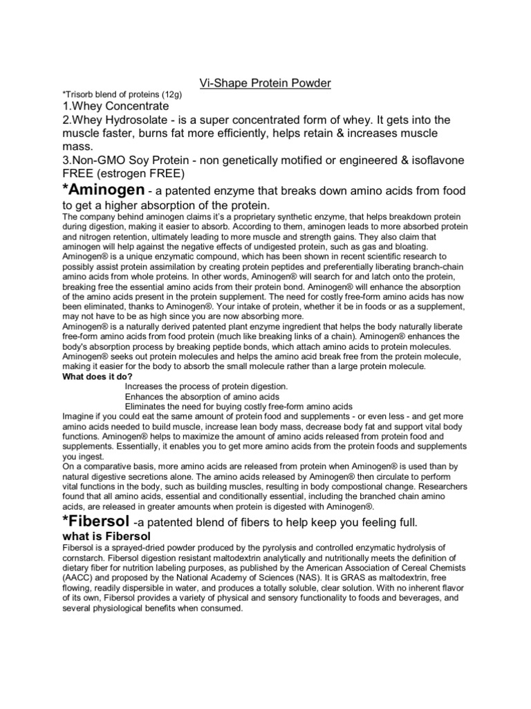 The company behind aminogen claims its a proprietary synthetic enzyme, that helps breakdown protein during digestion, making it easier to absorb. According to them, aminogen leads to more absorbed protein and nitrogen retention, ultimately leading to more muscle and strength gains. They also claim that aminogen will help against the negative effects of undigested protein, such as gas and bloating. Aminogen is a unique enzymatic compound, which has been shown in recent scientific research to possibly assist protein assimilation by creating protein peptides and preferentially liberating branch-chain amino acids from whole proteins. In other words, Aminogen will search for and latch onto the protein, breaking free the essential amino acids from their protein bond. Aminogen will enhance the absorption of the amino acids present in the protein supplement. The need for costly free-form amino acids has now been eliminated, thanks to Aminogen. Your intake of protein, whether it be in foods or as a supplement, may not have to be as high since you are now absorbing more. Aminogen is a naturally derived patented plant enzyme ingredient that helps the body naturally liberate free-form amino acids from food protein (much like breaking links of a chain). Aminogen enhances the body's absorption process by breaking peptide bonds, which attach amino acids to protein molecules. Aminogen seeks out protein molecules and helps the amino acid break free from the protein molecule, making it easier for the body to absorb the small molecule rather than a large protein molecule. What does it do? Increases the process of protein digestion. Enhances the absorption of amino acids Eliminates the need for buying costly free-form amino acids Imagine if you could eat the same amount of protein food and supplements - or even less - and get more amino acids needed to build muscle, increase lean body mass, decrease body fat and support vital body functions. Aminogen helps to maximize the amount of amino acids released from protein food and supplements. Essentially, it enables you to get more amino acids from the protein foods and supplements you ingest. On a comparative basis, more amino acids are released from protein when Aminogen is used than by natural digestive secretions alone. The amino acids released by Aminogen then circulate to perform vital functions in the body, such as building muscles, resulting in body compostional change. Researchers found that all amino acids, essential and conditionally essential, including the branched chain amino acids, are released in greater amounts when protein is digested with Aminogen.