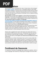 The origins of structuralism connect with the work of Ferdinand de Saussure on linguistics,