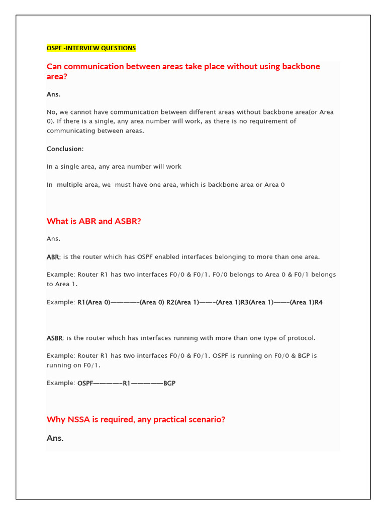 Example: R1(Area 0)————–(Area 0) R2(Area 1)——-(Area 1)R3(Area 1)——–(Area 1)R4
