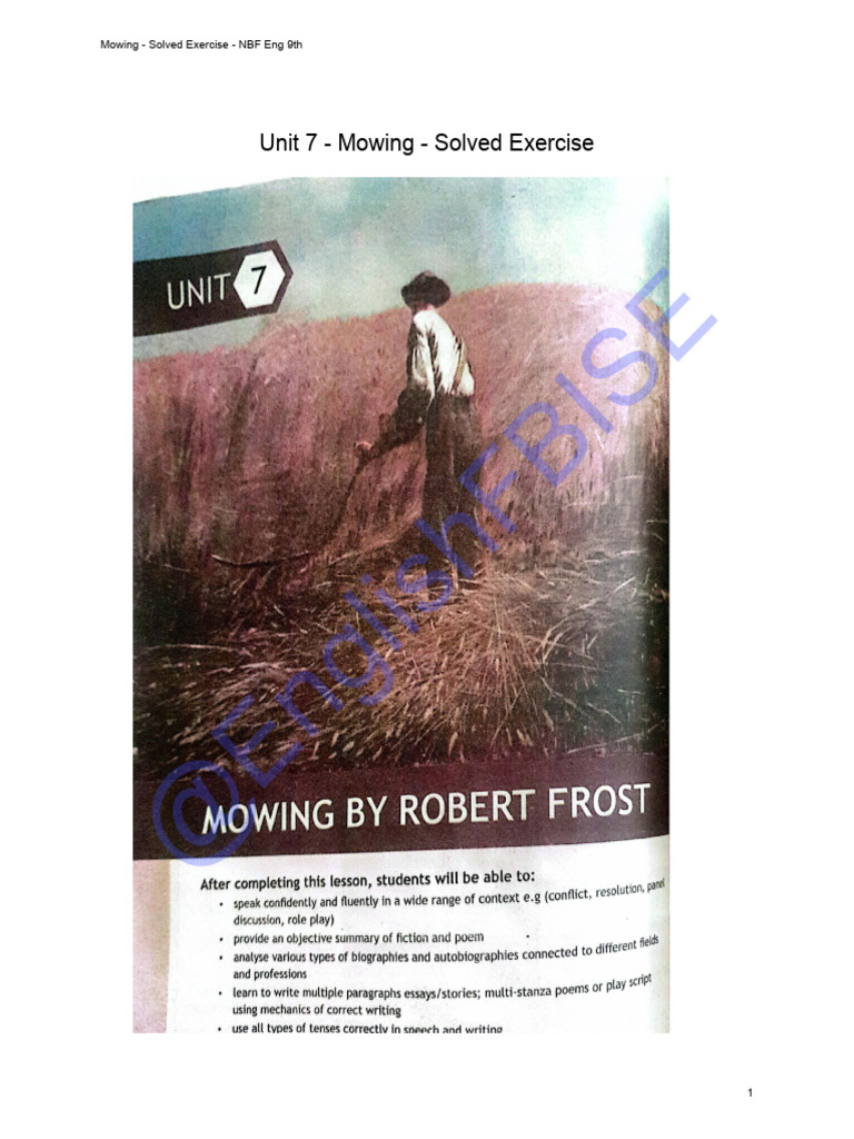 The poem "Mowing" by Robert Frost suggests that true satisfaction comes from hard work and