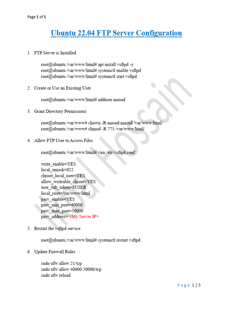 5. Restart vsftpd: Restart the FTP service to apply the changes: