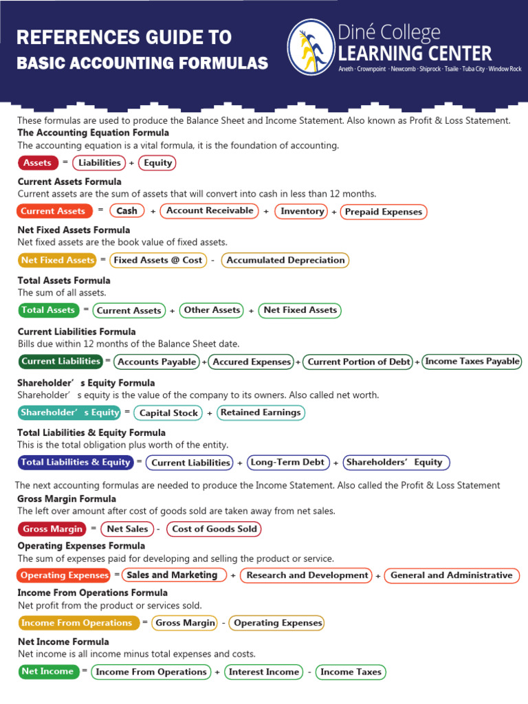 BASIC ACCOUNTING FORMULAS LEARNING CENTER