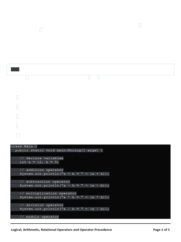 Logical, Arithmetic, Relational Operators and Operator Precedence Page 1 of 5