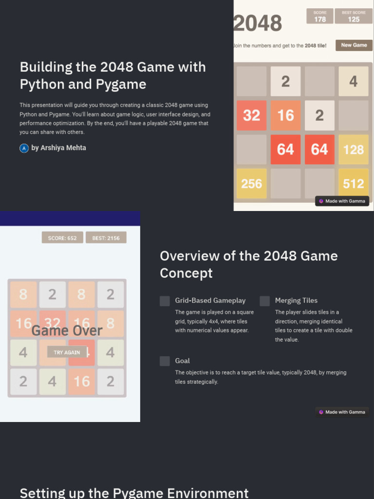The game board is a 2D grid, represented by a list of lists in Implement functions to handle tile movement in each direction