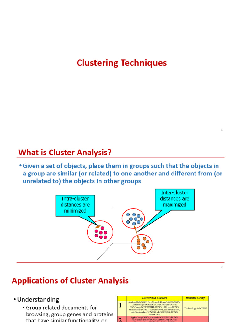 • A cluster is a set of objects such that an object in a cluster is closer (more