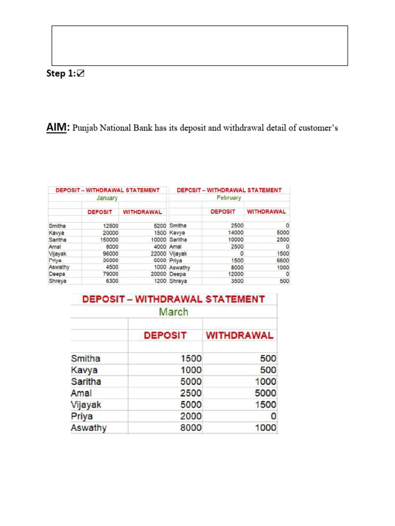 AIM: Punjab National Bank has its deposit and withdrawal detail of customer’s