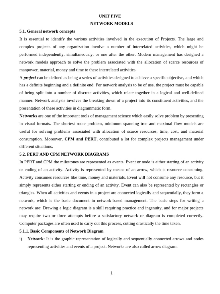 5.2. PERT AND CPM NETWORK DIAGRAMS