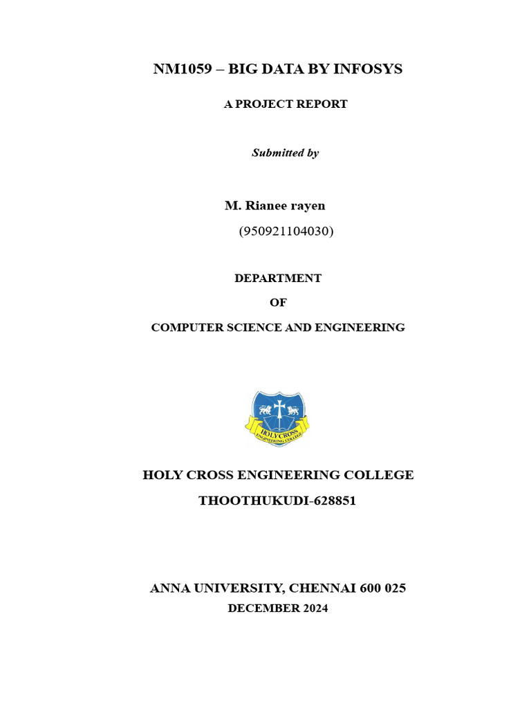 Certified that this Naan Mudhalvan project report “BIG DATA” is the