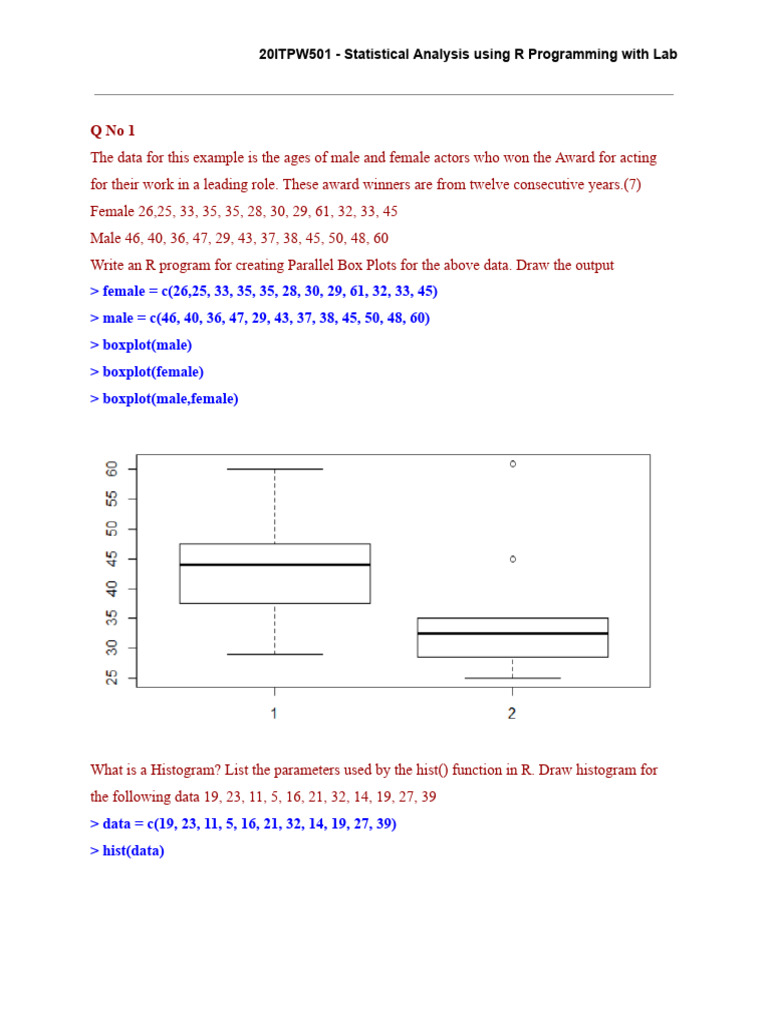 20ITPW501 - Statistical Analysis using R Programming with Lab