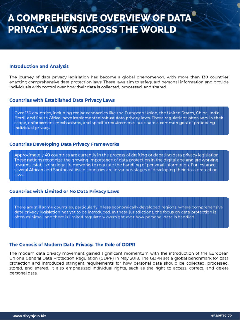 Brazil, and South Africa, have implemented robust data privacy laws. These regulations often vary in their