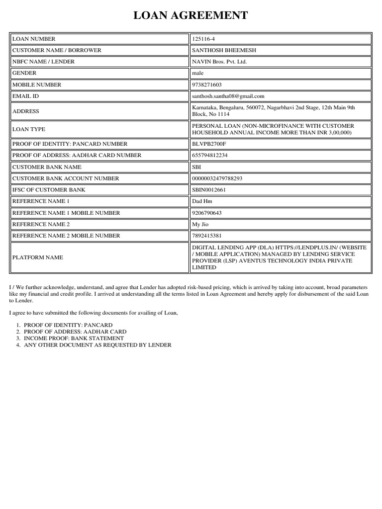 33. Borrower understand that he will be serviced by the Lending Service Provider (LSP) {Aventus Technology India Private Limited} / Digital Lending