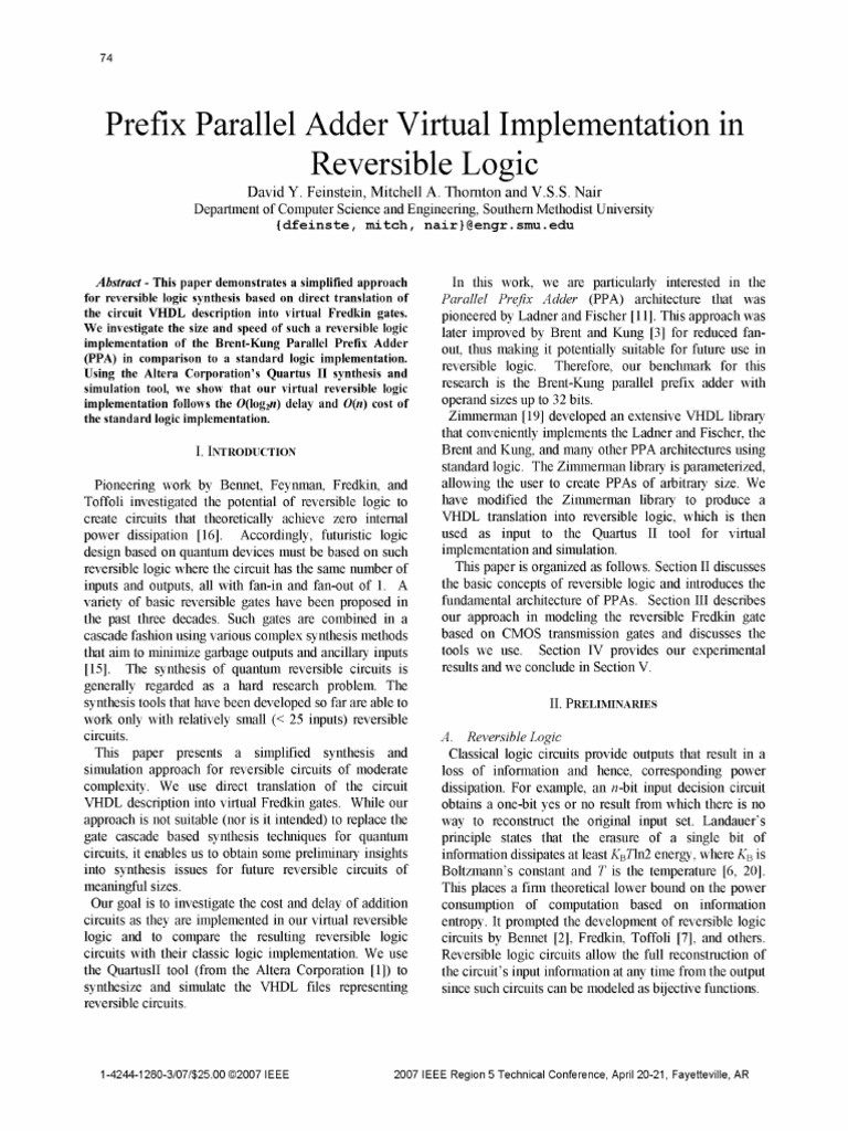 the circuit VHDL description into virtual Fredkin gates. pioneered by Ladner and Fischer [11]. This approach was