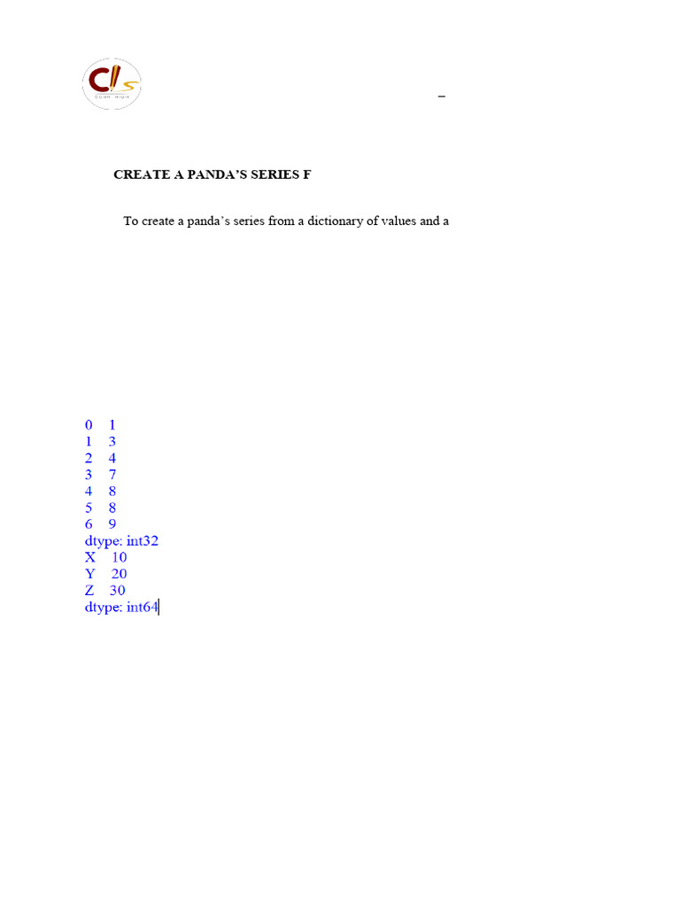 CREATE A PANDA’S SERIES FROM A DICTIONARY OF VALUES AND