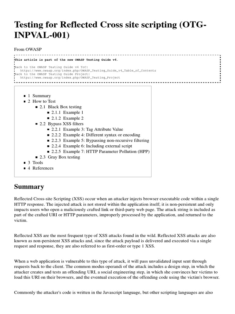 Retrieved from "https://www.owasp.org/index.php?title=Testing_for_Reflected_Cross_site_scripting_(OTG-