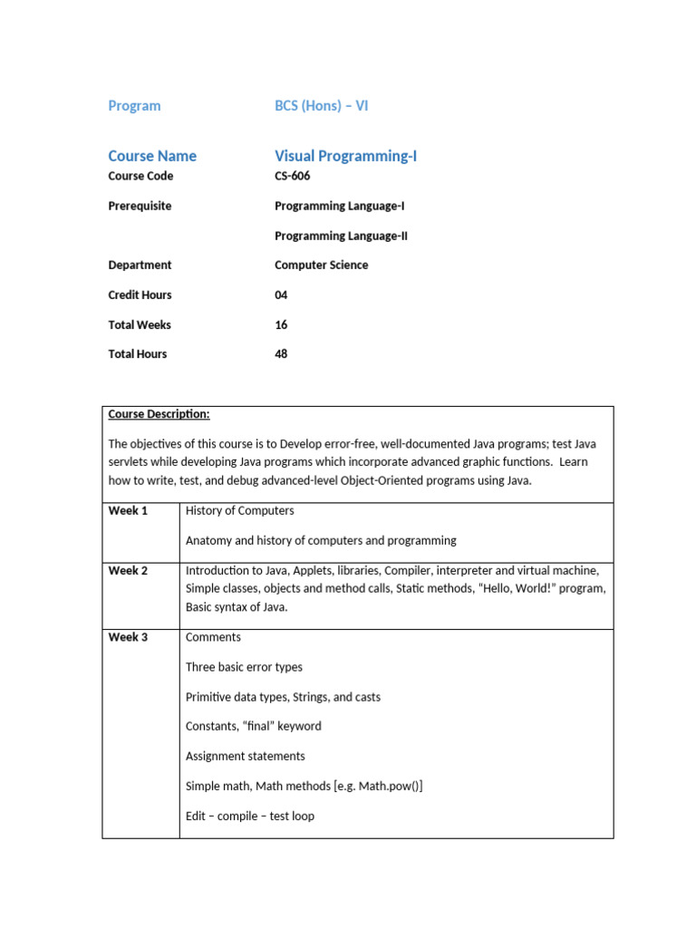 The objectives of this course is to Develop error-free, well-documented Java programs; test Java