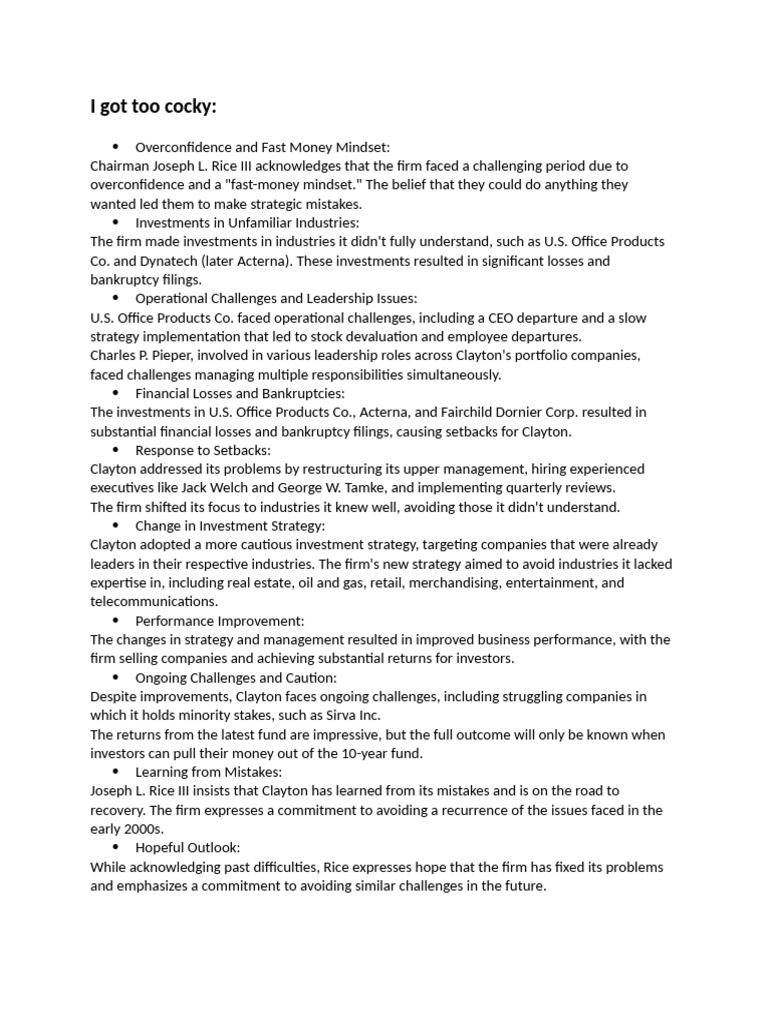 Clayton, Dubilier & Rice had learned from its past challenges, including the bankruptcy of U.S.