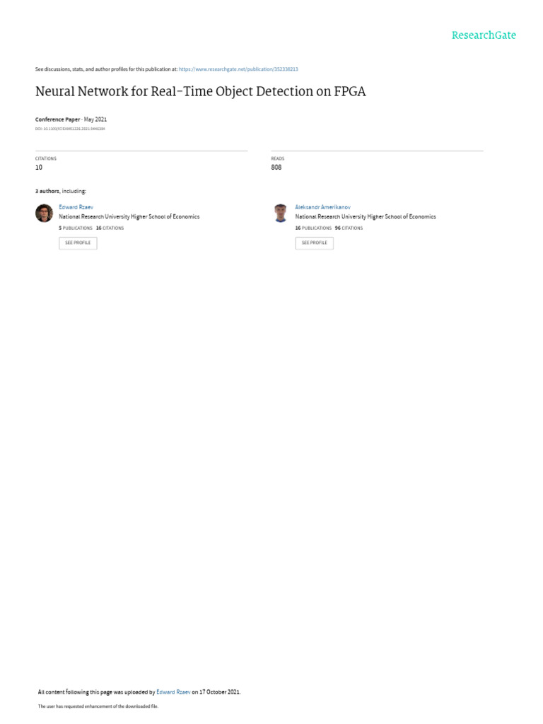 For processing images in real time, a computing base was The result of the project is a FPGA board that recognizes