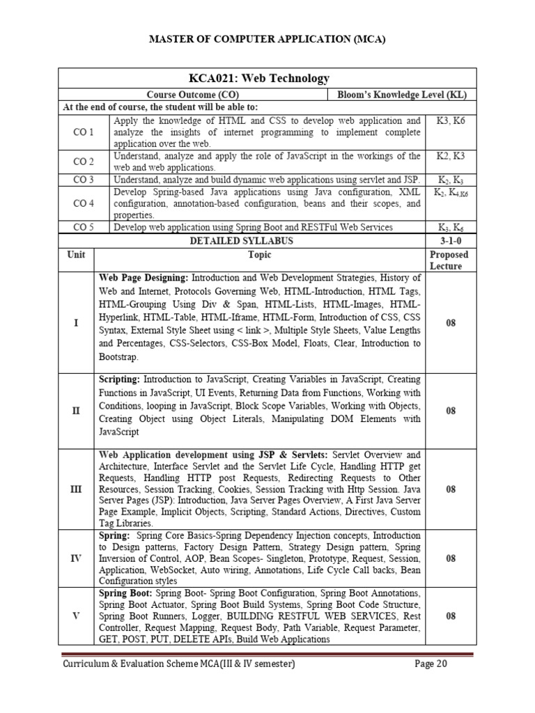 Curriculum & Evaluation Scheme MCA(III & IV semester) Page 20