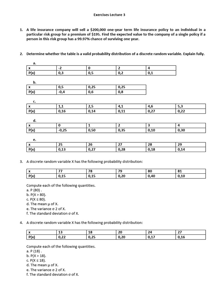 2. Determine whether the table is a valid probability distribution of a discrete random variable. Explain fully.