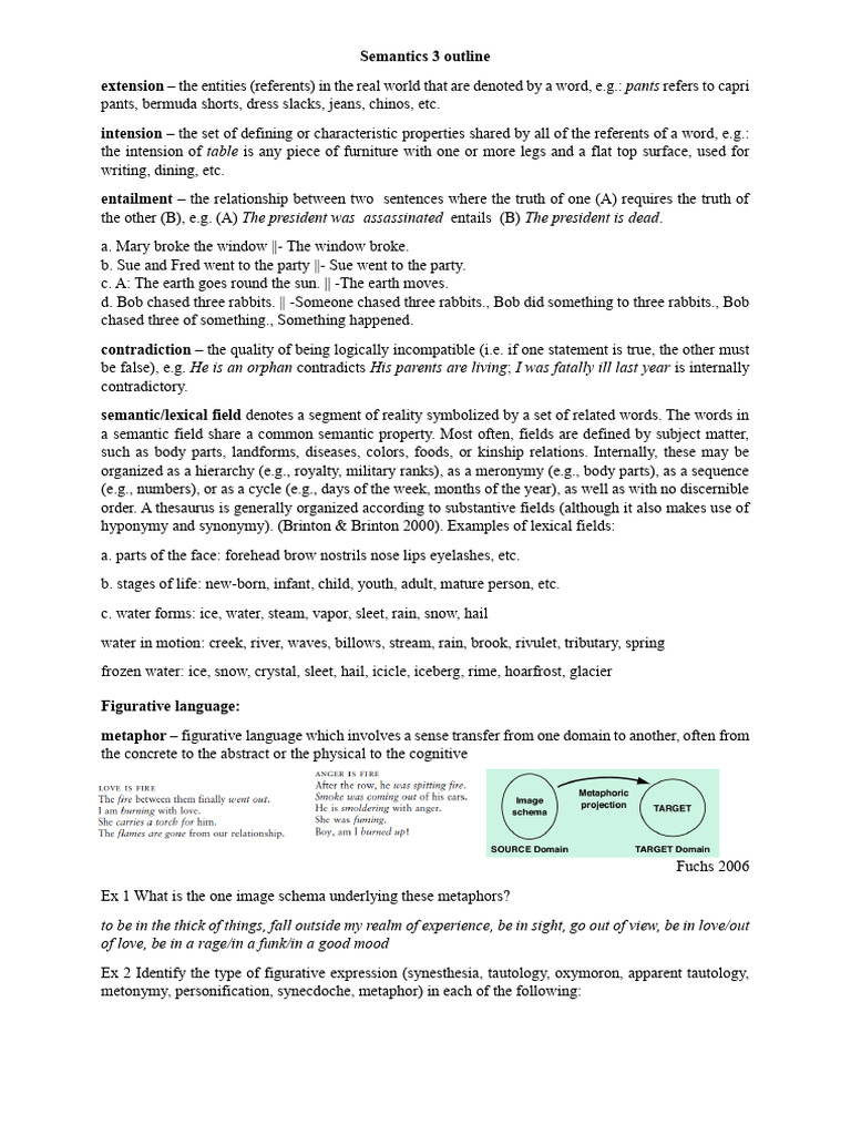 extension – the entities (referents) in the real world that are denoted by a word, e.g.: pants refers to capri