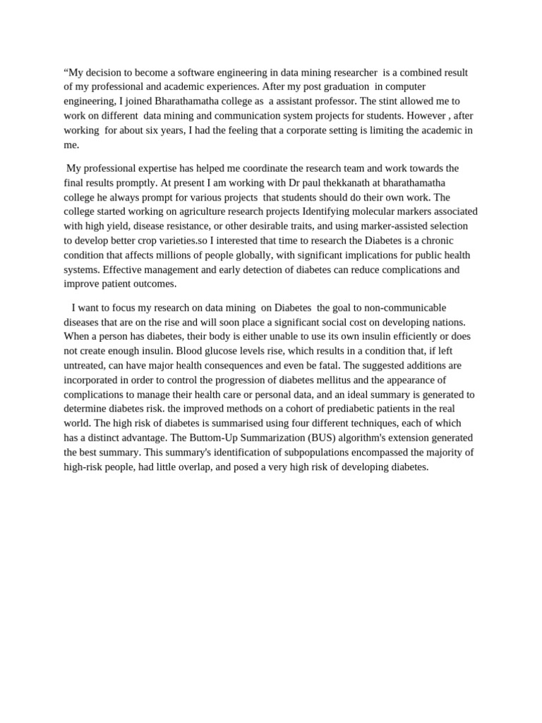 final results promptly. At present I am working with Dr paul thekkanath at bharathamatha