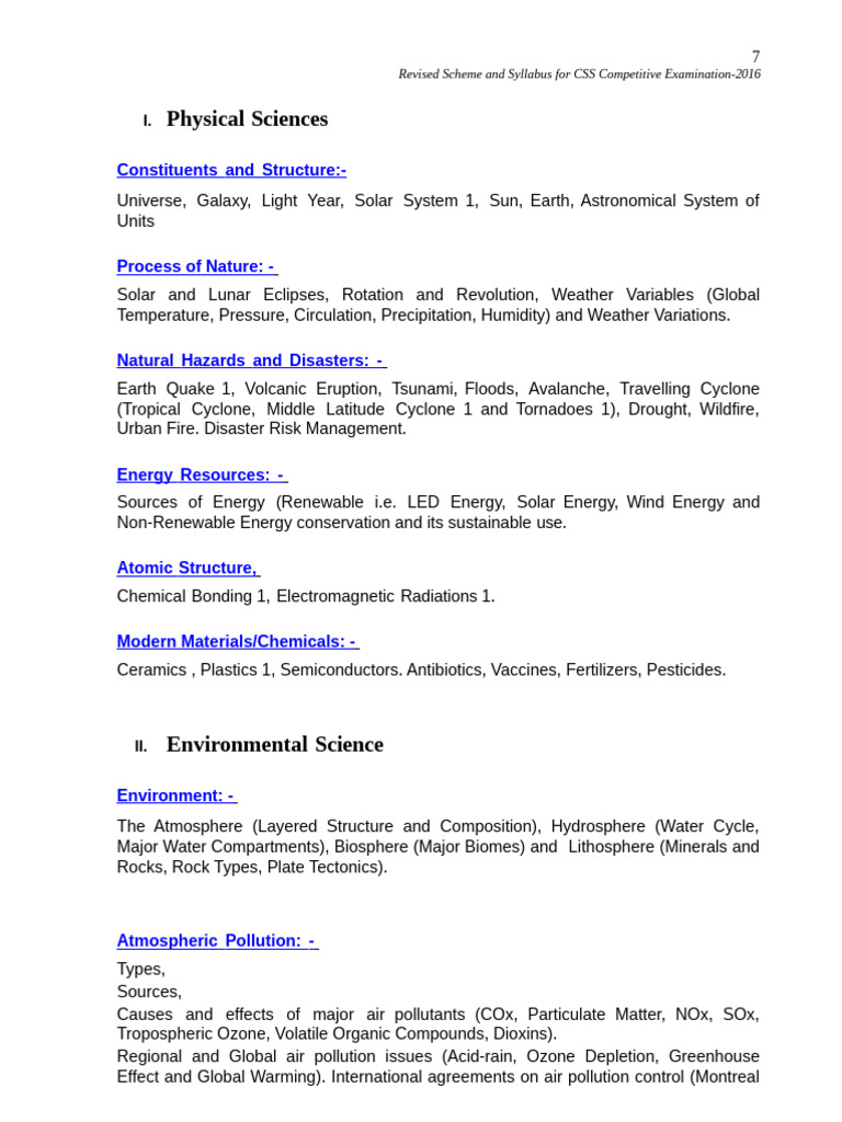 Revised Scheme and Syllabus for CSS Competitive Examination-2016