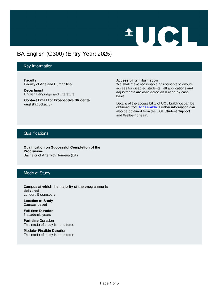 english@ucl.ac.uk Details of the accessibility of UCL buildings can be