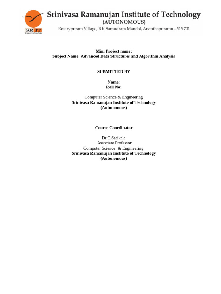 Subject Name: Advanced Data Structures and Algorithm Analysis