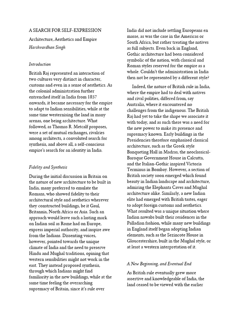 customs and even in a sense of aesthetics. As Indeed, the nature of British rule in India,