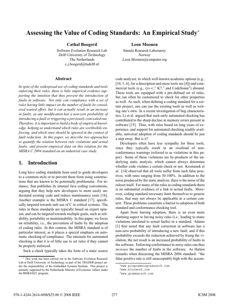 tion tools [22, 18]. tween coding rule violations and faults; and (2) empirical