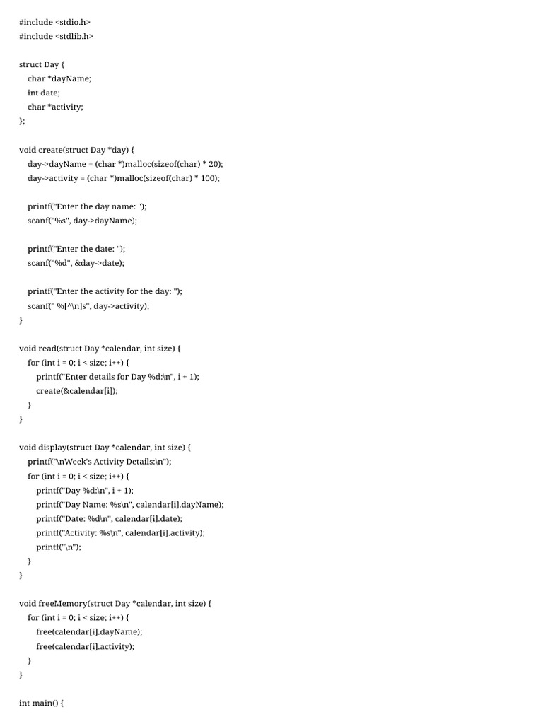 struct Day *calendar = (struct Day *)malloc(sizeof(struct Day) * size);