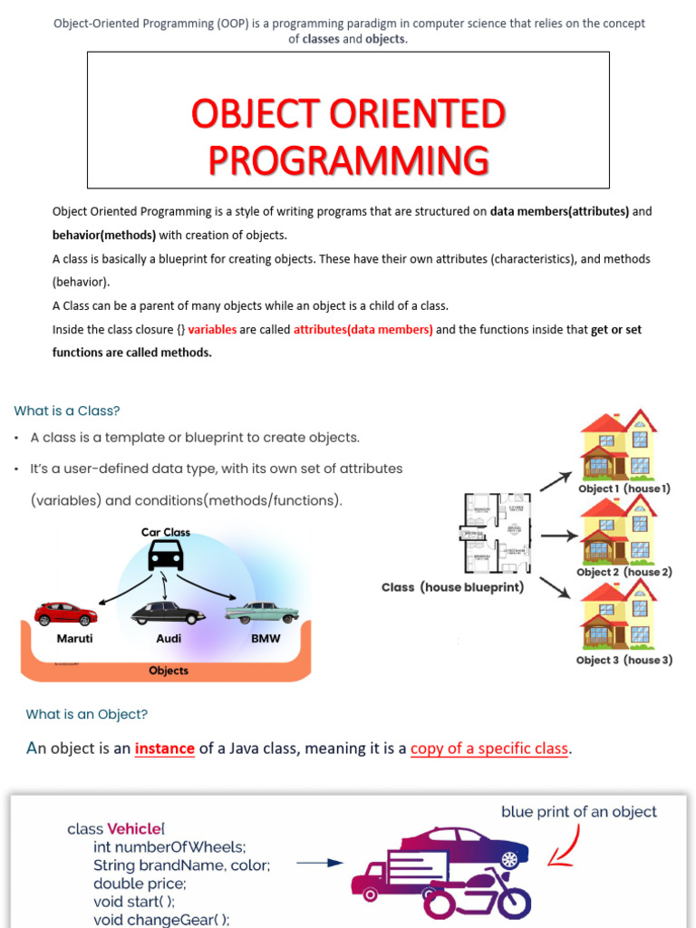 Object Oriented Programming is a style of writing programs that are structured on data members(attributes) and