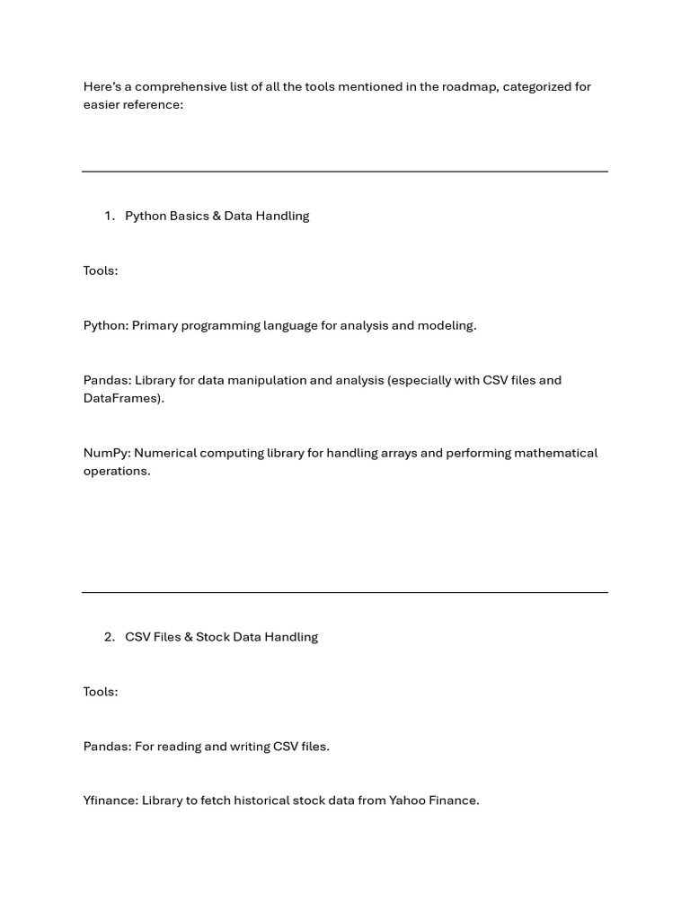 Here’s a comprehensive list of all the tools mentioned in the roadmap, categorized for