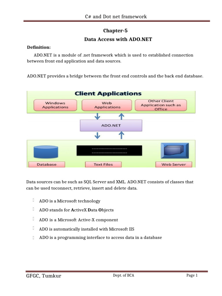 Data sources can be such as SQL Server and XML. ADO.NET consists of classes that