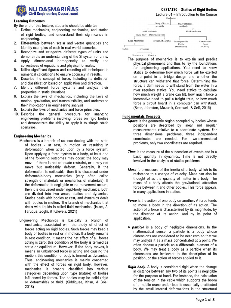 1. Define mechanics, engineering mechanics, and statics