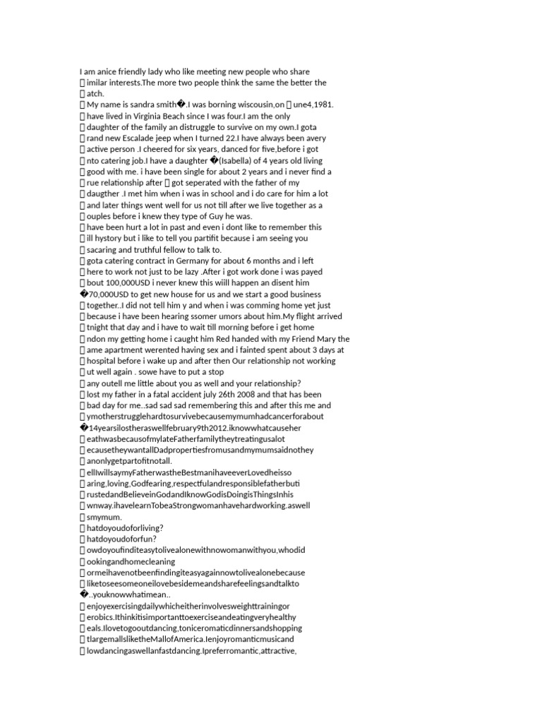 燤 My name is sandra smith�.I was borning wiscousin,on 爅 une4,1981.