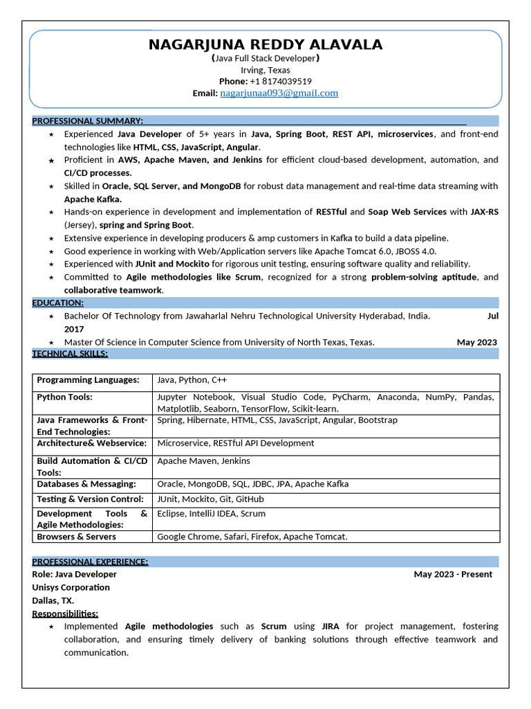 methodologies, stayed updated with Java tech trends, and managed project dependencies with Apache